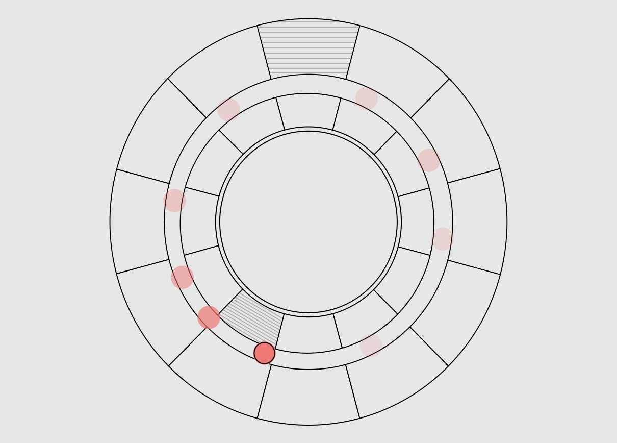 A red marker is placed along the outer ring. The position corresponds to the alarm time.