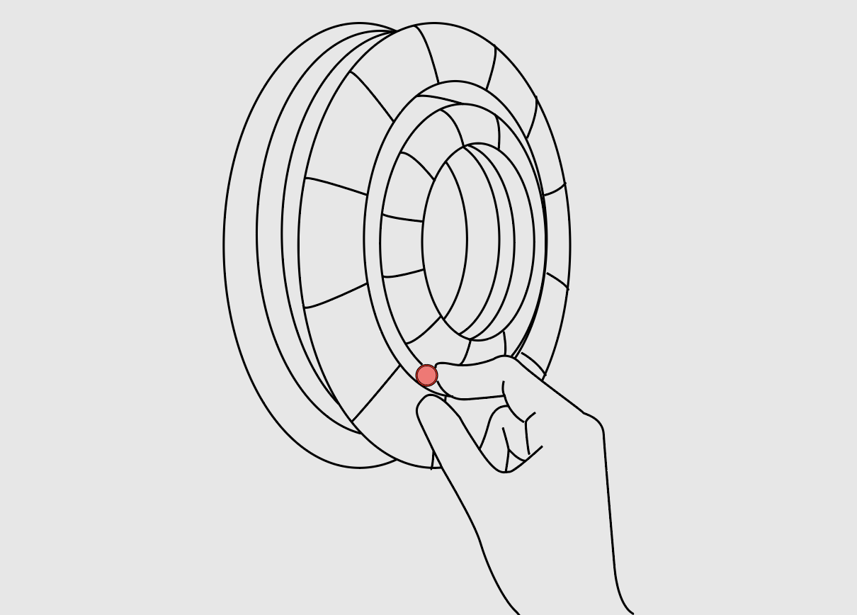 The user rotates the red sphere one full clockwise cycle. Internal resistance prevents abrupt movement. The alarm deactivates only through completed motion.